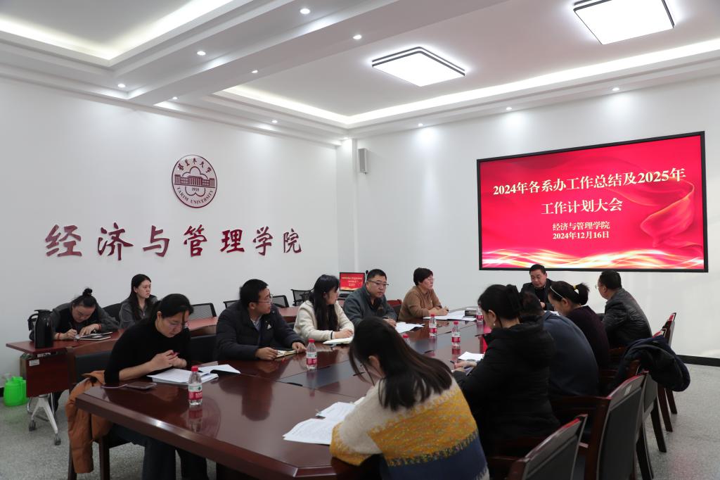 蒋志辉就学院2024年整体的工作给予肯定,就各系办工作的不足之处给出了建议。并强调,2025年工作任重道远,需要为学院博士点的申报,学科的建设打下坚实的基础,希望学院全体成员能够同心协力,砥砺奋进,为学院的建设,学校的建设做出新的更大贡献。