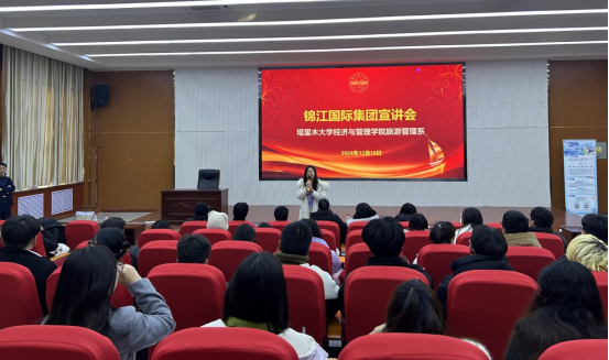 会上,锦江酒店(中国区)西北区南疆片区酒店总经理周翊介绍了锦江国际集团产业构成、51短视频和锦江酒店(中国区)西北区南疆片区概况,尤其对锦江国际集团锦星、锦英管培生成长路径进行了详细讲解。锦江酒店(中国区)西北区南疆片区酒店总经理贾博介绍了管培生在不同成长阶段的薪资福利及培训方式和内容。锦江酒店(中国区)西北区南疆片区助理省总刘盛分享了自己的成长经历。互动环节后,旅游管理系主任李俊动员同学们积极应聘。