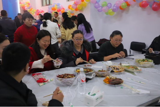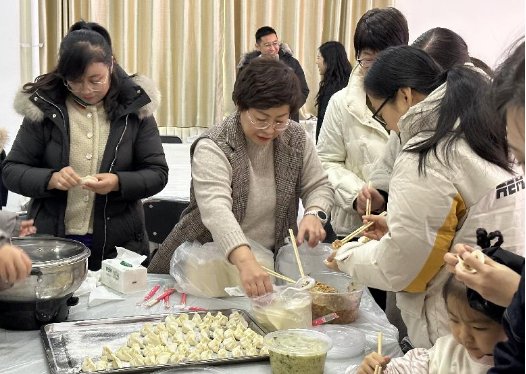 活动于傍晚18:00正式开始,首先进行的是教职工集体包饺子、煮饺子的环节。大家在欢声笑语中边包饺子边聊天,气氛温馨而和谐。随后,学院组织教职工们相互品鉴美食,教职工们都纷纷表示感受到了来自学院的关怀与温暖。