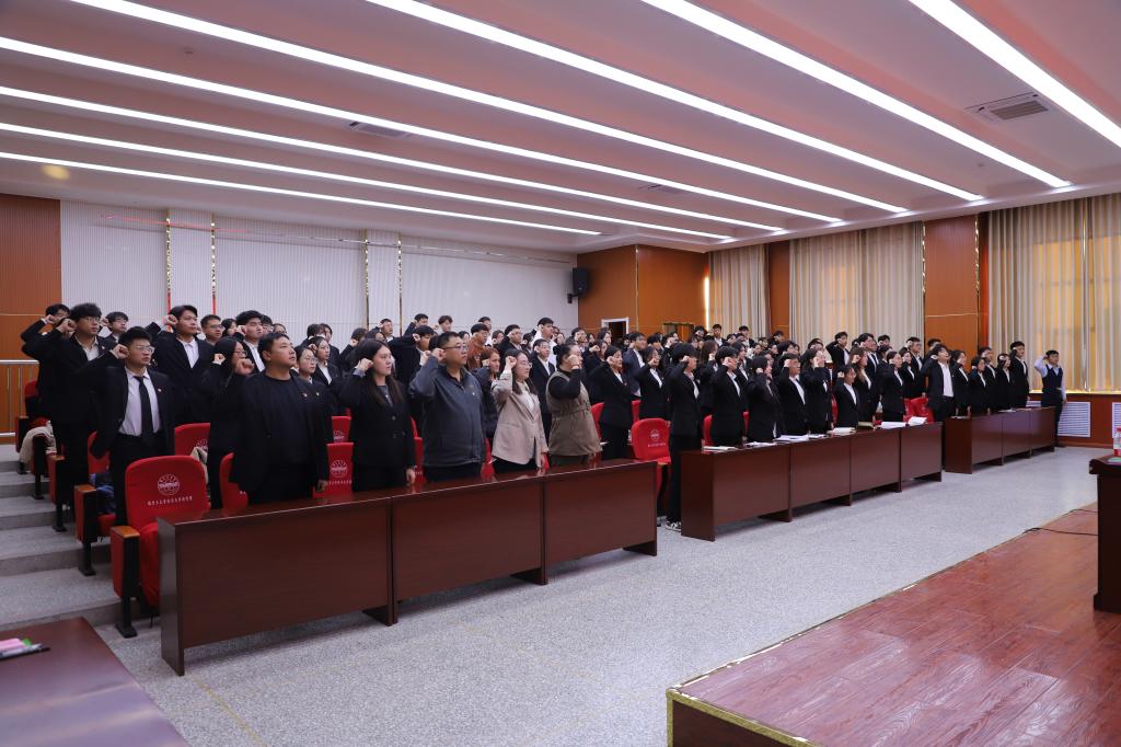 党委于文科实验楼504会议室召开2024年下半年新党员入党宣誓大会,学院党委书记蒋志辉,各学生党支部书记及全体在校党员参加。