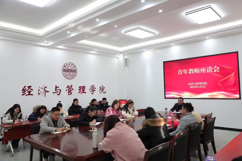 为助力学院青年教师成长、促进学院发展、加强团队凝聚力,增强青年教师对学院的归属感和认同感,形成良好的团队氛围。1月2日,学院于文科实验楼209会议室召开学院青年教师座谈会,学院党委书记蒋志辉及学院全体青年教师出席。