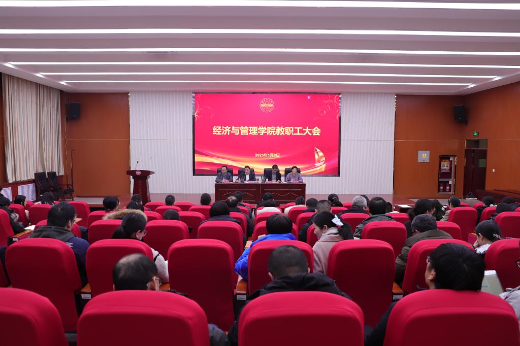 2025年1月8日,学院在文科实验楼504报告厅召开2024-2025学年第一学期学院教职工大会。学院全体成员参加会议。会议由学院党委书记蒋志辉主持。