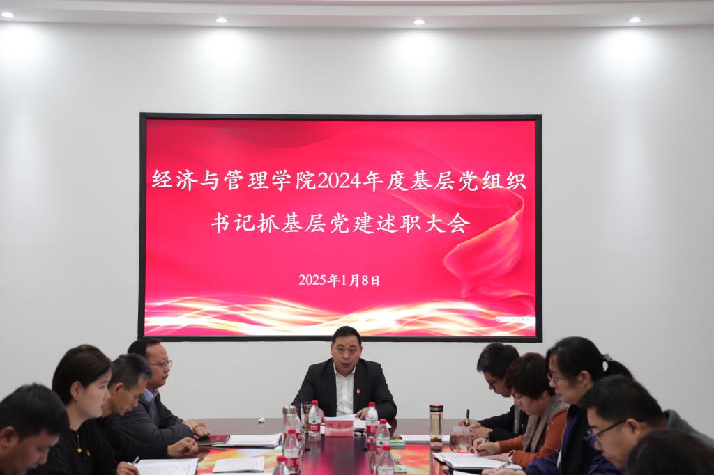 为贯彻落实党中央党要管党、全面从严治党的工作要求,按照学校党委组织部统一要求,2025年1月8日,学院在文科实验楼209会议室召开2024年度基层党组织书记抓基层党建述职大会,参加本次会议的主要有学院党委领导班子成员、学院全体党总支、党支部书记、组织部督导及基层“两代表一委员”和党员干部代表。会议由学院党委书记蒋志辉主持。