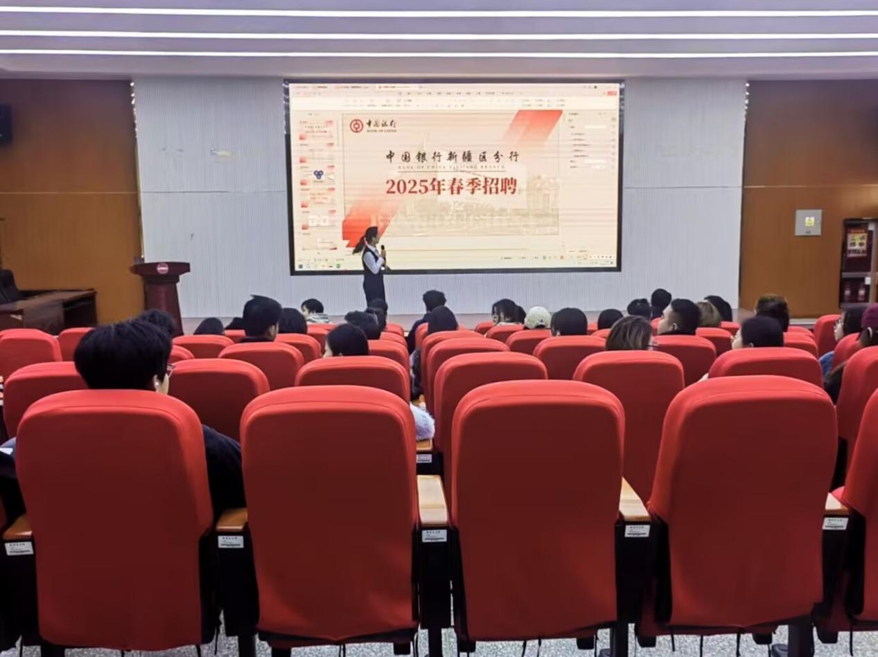 与中国银行阿克苏分行开展2025年春季首场校园招聘宣讲会。