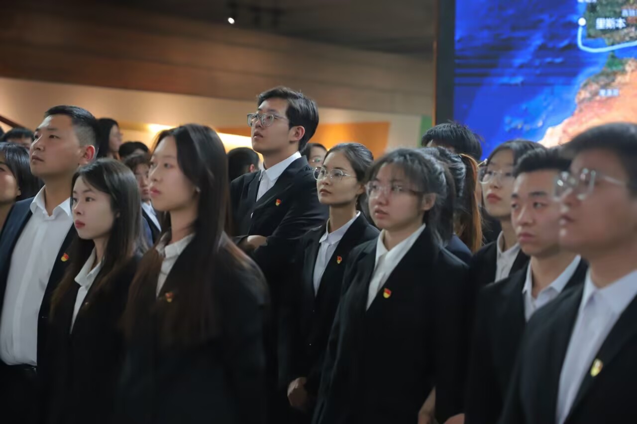 在讲解员动情讲述中,三五九旅“一手拿枪、一手扶犁”,在塔克拉玛干沙漠边缘开荒造田的壮举震撼人心。学生党员毛欢欢驻足于复原的“地窝子”场景前感慨:“难以想象先辈们在漫天黄沙中,用血肉之躯筑起绿洲长城。”并表示自己将以胡杨精神扎根边疆,让青春在党旗指引下绽放绚丽之花!