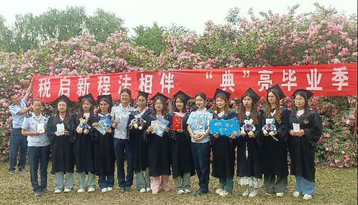 活动临近尾声,所有参与者在花海中合影留念。还有不少同学意犹未尽,纷纷拍摄个人照片,用影像珍藏这段寓教于乐的美好时光。这场在花香中开展的税法知识活动,不仅让同学们在轻松愉悦的氛围里收获满满干货,为毕业生送上了一份实用的税务指南,帮助大家走好职业生涯的“税收第一步”,让税收知识成为青春启航路上的坚实助力,更在大家心中播下了依法纳税的种子,还正式拉开了财会系与税务局携手打造的“税会融合”专业税法实践课堂的华丽序幕。