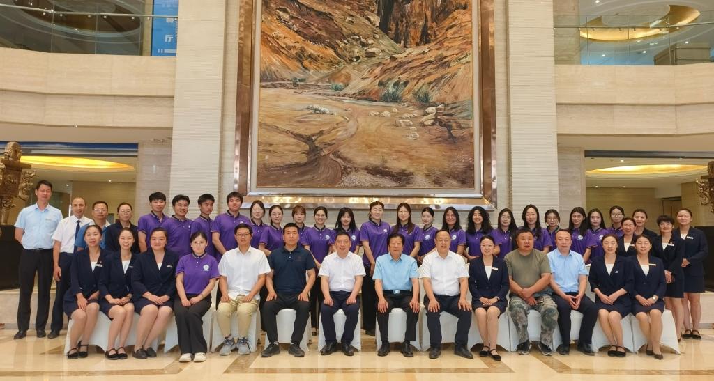 2025年5月28日上午,学院党委书记蒋志辉、教师代表及旅发大会志愿者团队、库车饭店领导及各部门负责人齐聚库车饭店A座3楼北京厅,开展自治区旅发大会志愿者座谈会暨校企合作签约仪式。