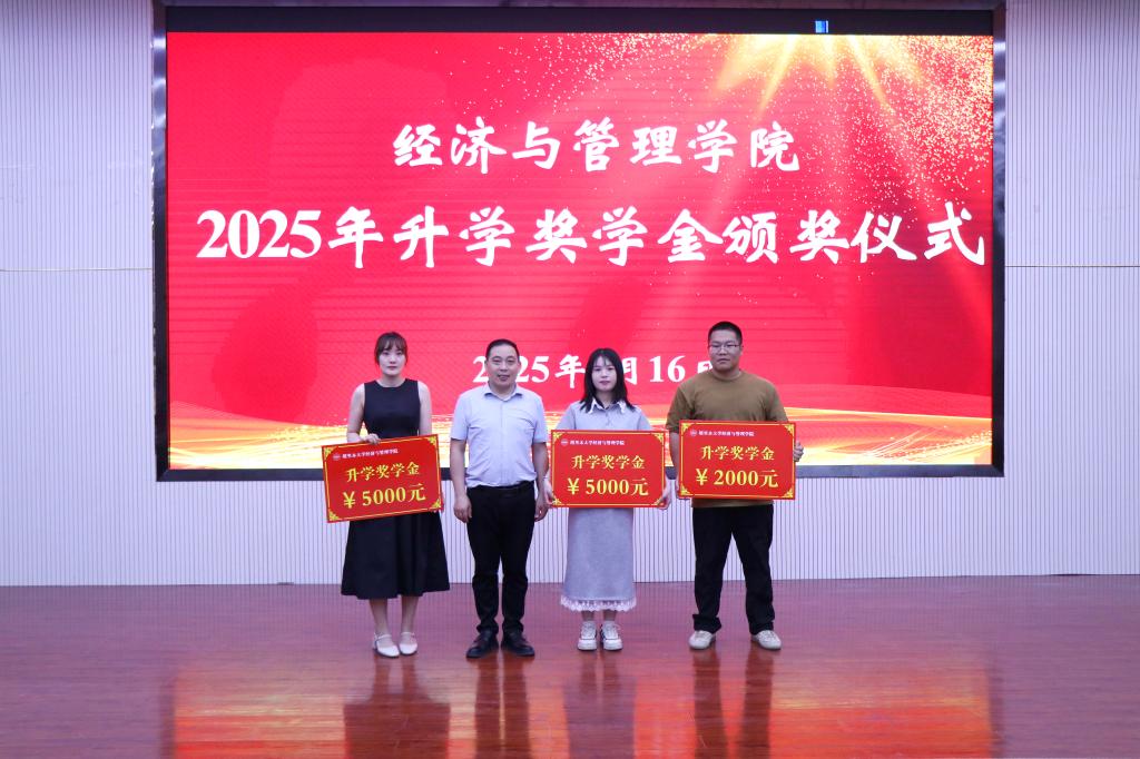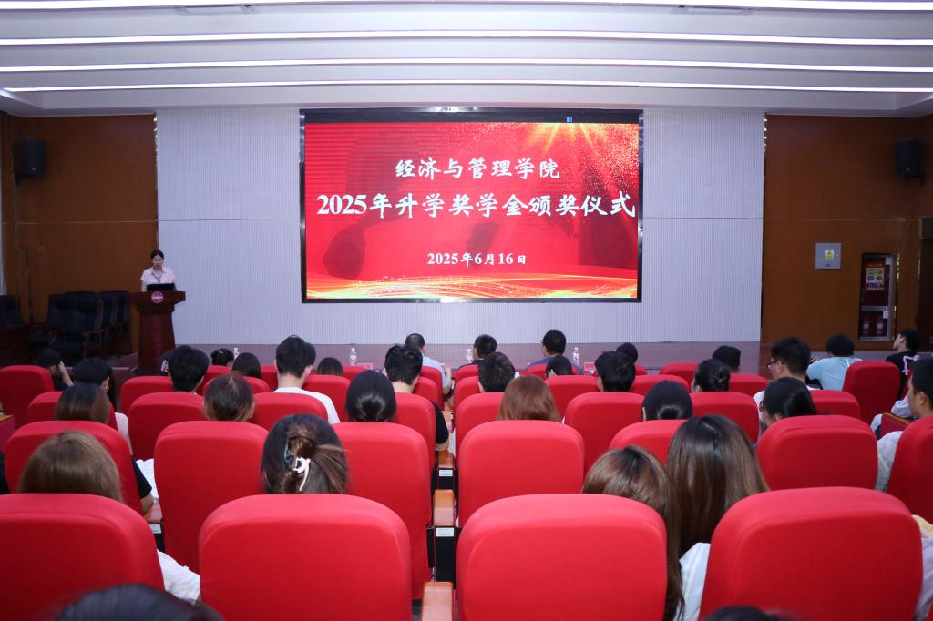 2025年升学奖学金颁奖仪式在文科实验楼504报告厅举行。学院党委书记蒋志辉,党委副书记、纪委书记朱哲,党委委员、副院长李博,各系主任,教务办主任,学办主任,科研办主任及全体研究生、部分本科生参加,仪式由李博主持。
