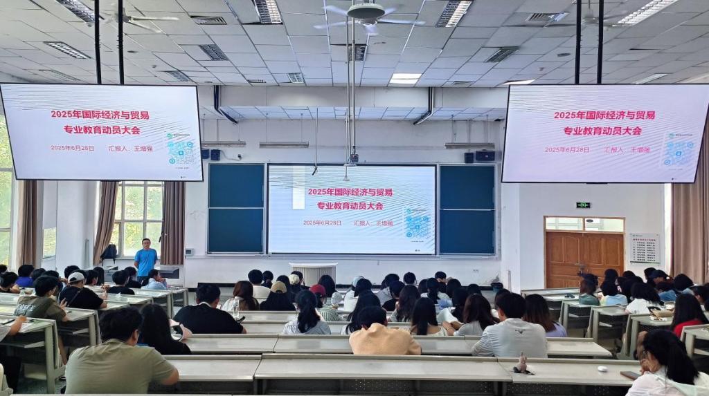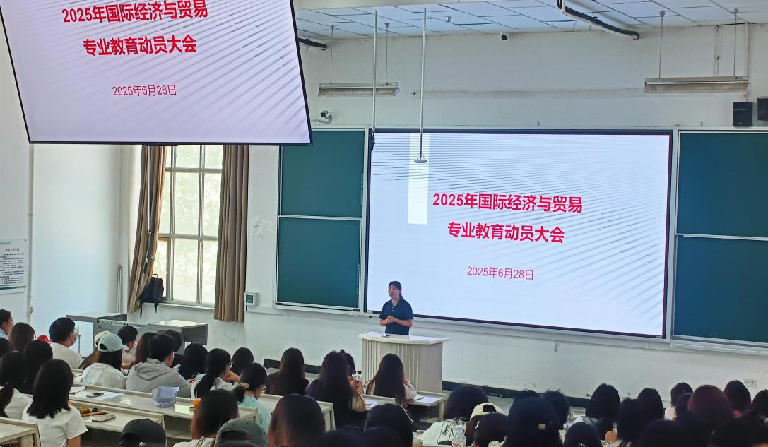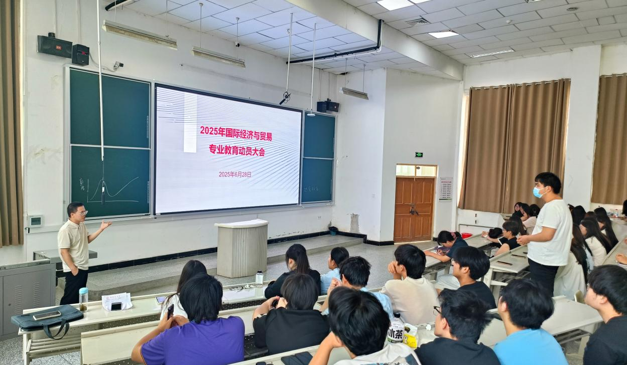 2025年6月28日,经贸系国际经济与贸易专业教育大会在综合楼阶教3成功举行。国际经济与贸易专业负责人王增强、教师代表及国际经济与贸易专业全体学生出席本次大会,经贸系副主任邢怀浩主持会议。