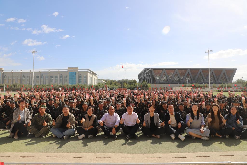为做好 2025 级新生军训保障工作,传递学院关怀、强化新生归属感,同时向辛勤付出的军训教官致以敬意,9月 24日,学院在西区田径场开展2025级新生军训慰问活动。学院党委书记蒋志辉带领全体院领导及辅导员深入军训现场,亲切慰问参训新生与教官,不仅为大家送上慰问物资,更以殷切话语给予鼓励,让学生与教官深切感受到学院的温暖关怀。
