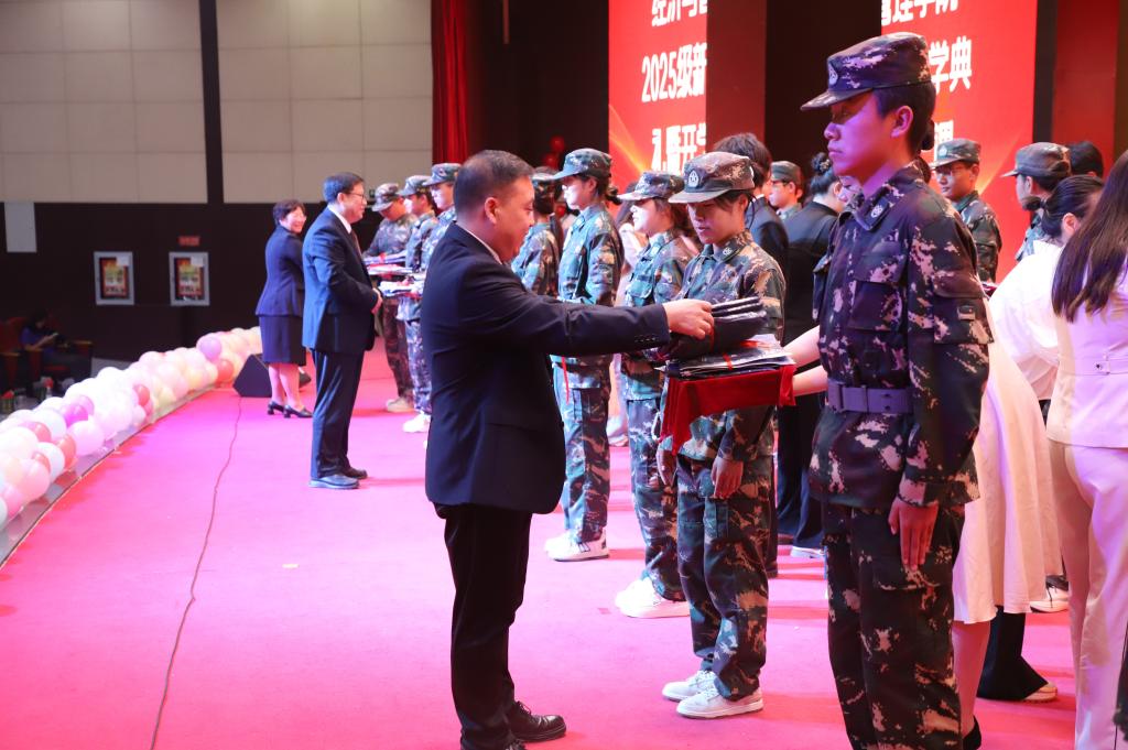 2025级新生开学典礼暨开学第一课在全体新生挥动国旗合唱《歌唱祖国》中结束。