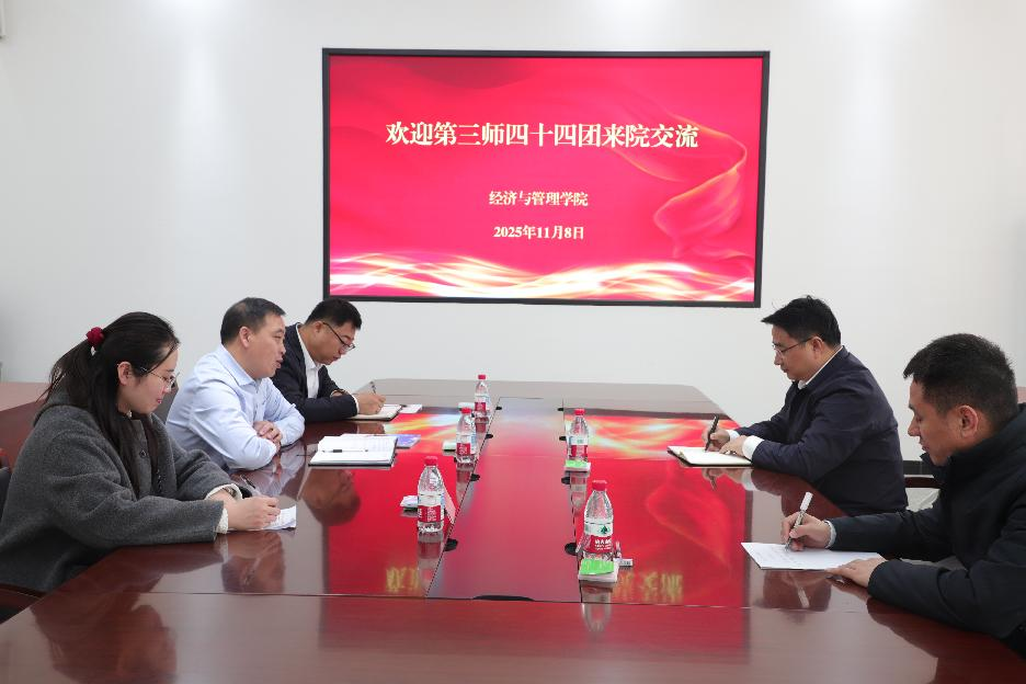 党委书记蒋志辉与第三师四十四团政委贺明君一行在文科实验楼 212 会议室举行座谈交流,双方围绕乡村振兴、科研合作、人才培养等核心议题展开深度探讨,明确校地协同发展的重点方向与实施路径。