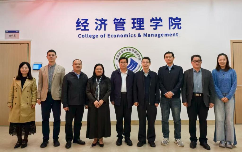 为加强学科建设,10日,学院院长王学剑、党委副书记陈曙、经贸系副主任邢怀浩一行赴华南农业大学经济管理学院开展调研交流。华南农业大学经济管理学院党委书记张晖、院长罗明忠、党委副书记曾璇、副院长黄松、副院长刘盛展及经济系副主任喻美辞参与座谈交流。