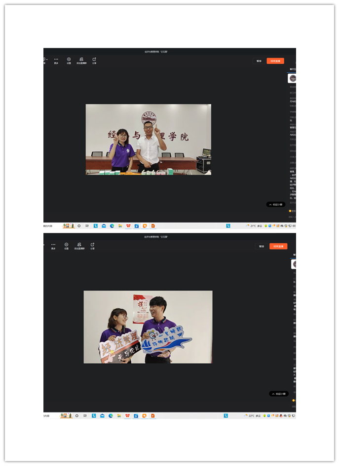 直播开始,热纳汗·阿布力米提、徐振威老师化身导游主播,通过直播镜头带着2022级新生们打卡经管,第一个大惊喜就是新生照片墙,采用新生照片制作了一整面照片墙,欢迎2022级新同学的到来。走进新文科楼南侧,开启今天的经管打卡之旅,带领新同学们参观51短视频