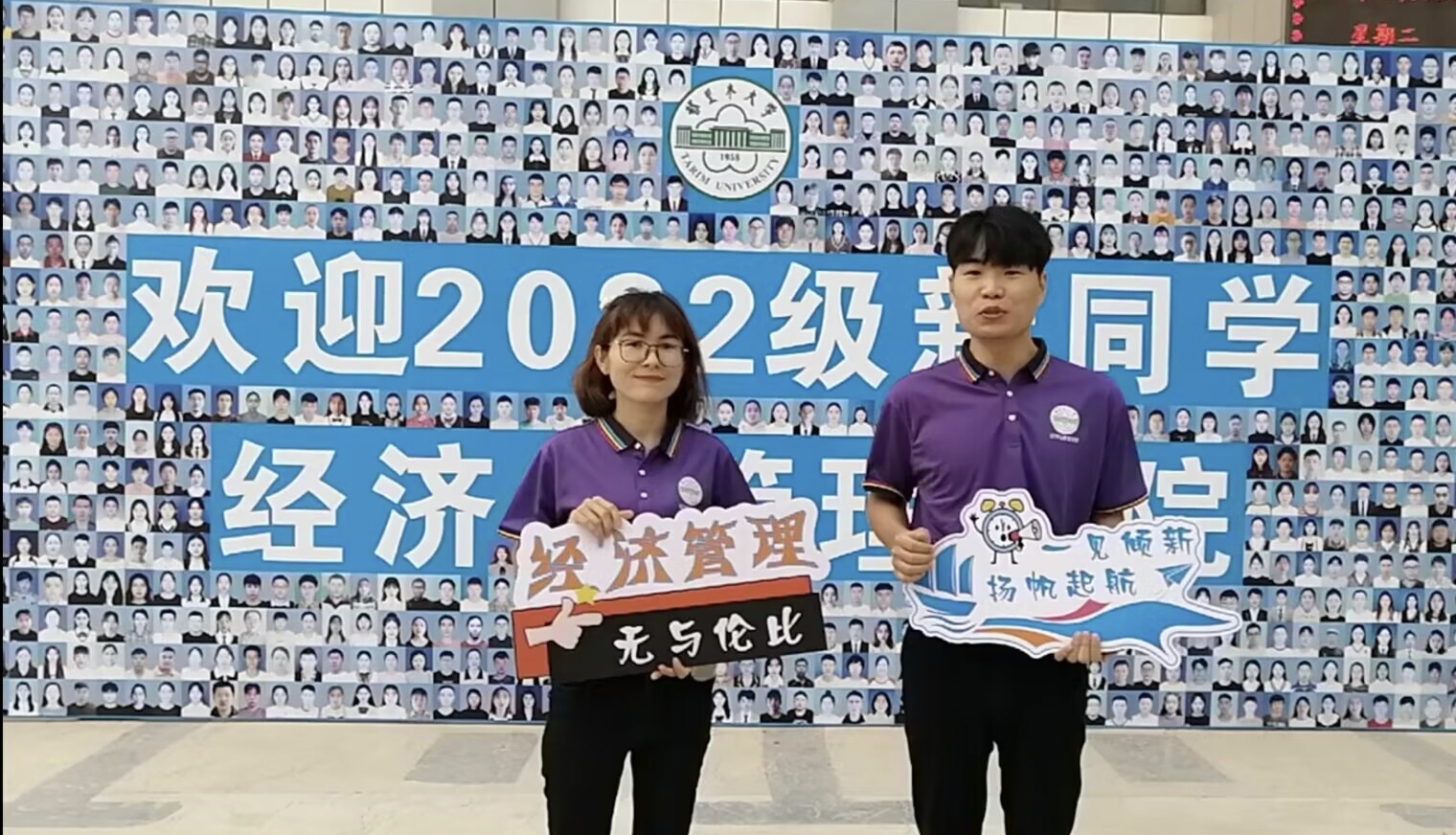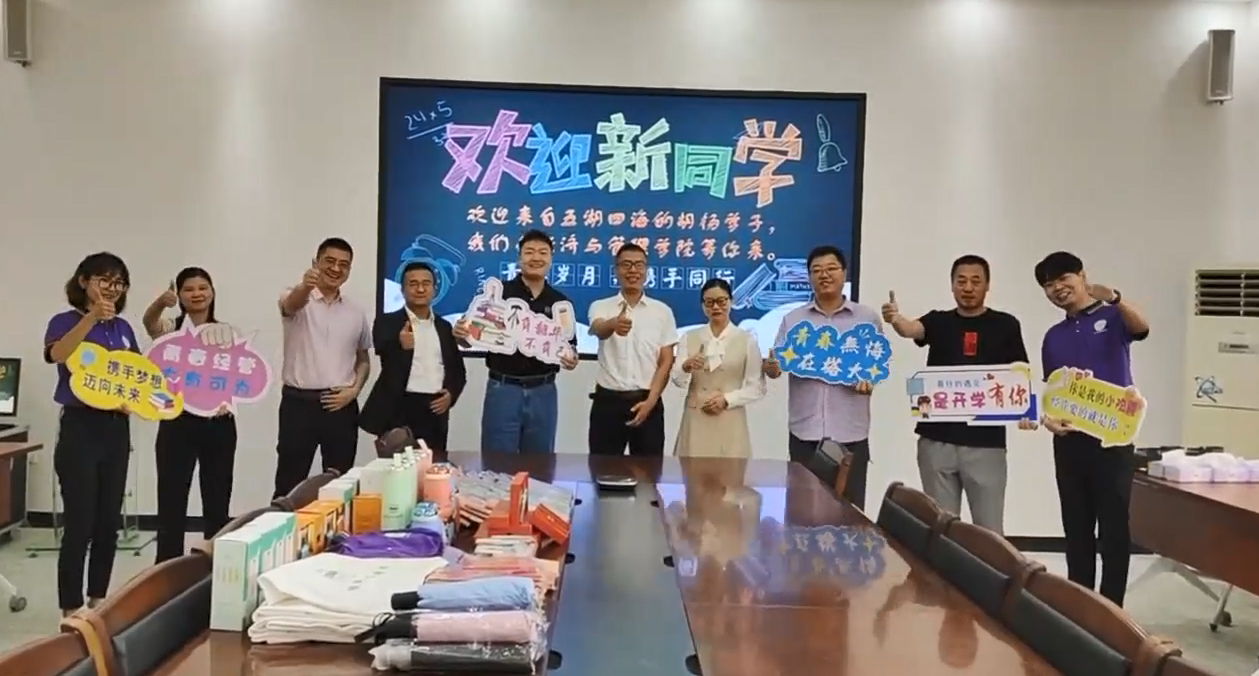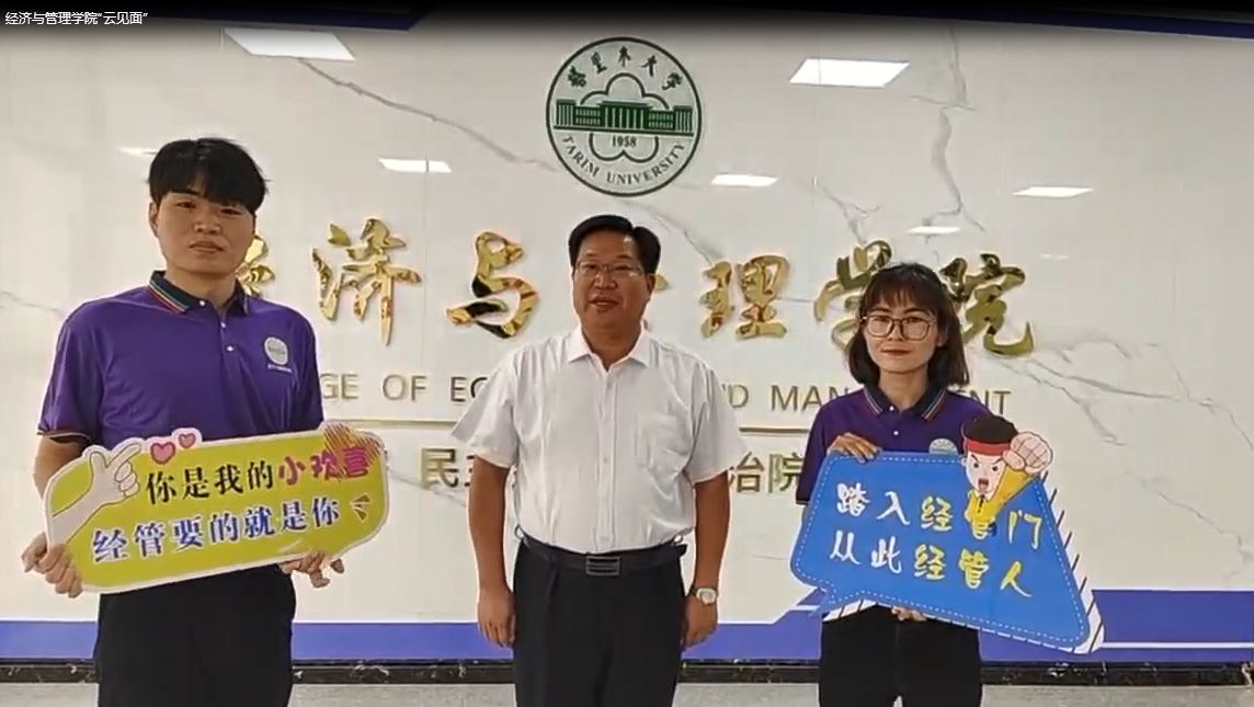 有着深厚的文化底蕴,优美的学习环境,有一支教书育人、服务育人的良师益友, 也有一批朝气蓬勃,帅气与颜值在线的学长学姐,“宝剑锋出磨砺出,梅花香自苦寒来”,你们带着青春活力,怀揣梦想,相融经管,也必定成为我们学院一道最美丽的风景线,希望各位新同学胸怀国之大者,做一个有情怀的人,为实现中华民族伟大复兴,做一个有梦想的人,疫情必将战胜,乌云终将散去,让我们在神奇的塔河之畔,迷人的沙漠之门,美丽的胡杨之林不见不散。