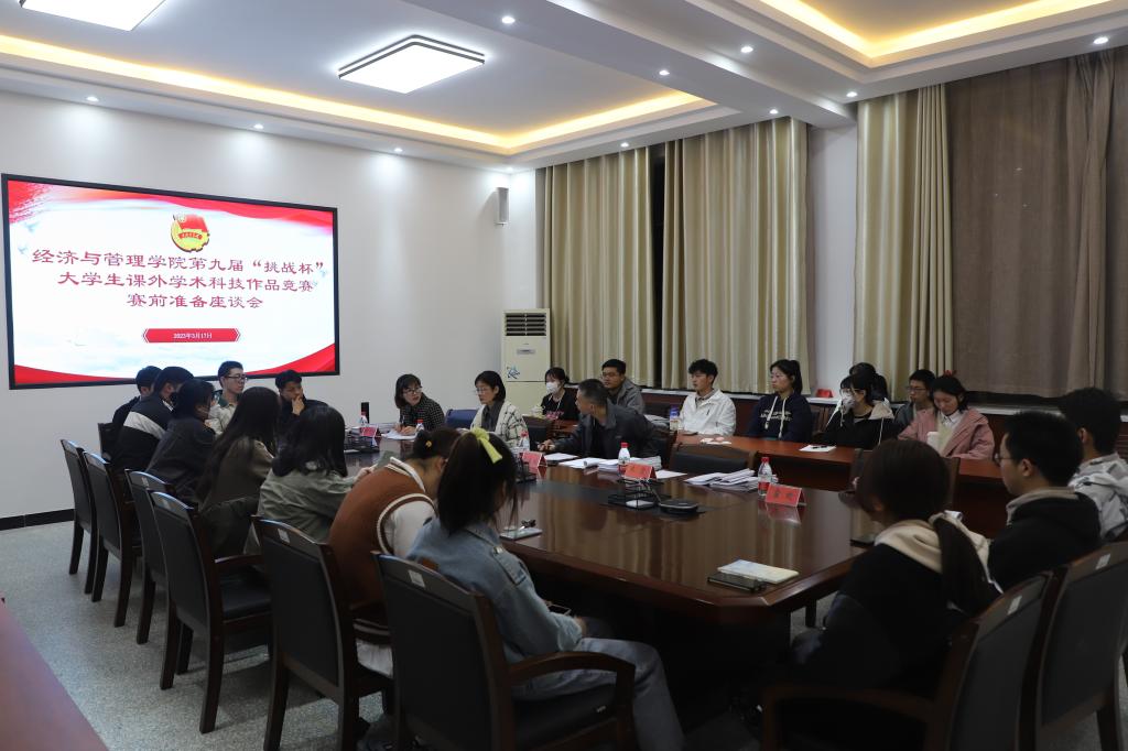 团委副书记热纳汗·阿布力米提特邀请入围校赛团队的指导老师和团队负责人在新文科楼209开展赛前准备座谈会。