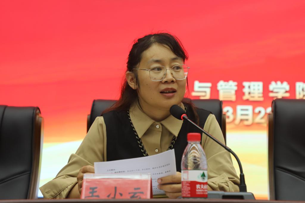学办主任王小云充分肯定了各位班长、团支书的工作成果,并就本学期的工作部署提出了几点希望与要求。第一,身心健康和良好的生活习惯是学生工作的基础,日常工作中发现问题要及时上报,做好学院工作的催化剂;第二,做好团结工作,活跃班内气氛,拥有良好精神气,争做新时代好青年;第三,要起到良好带头作用,做好表率,严格要求自己,认真履行为同学服务的职责,处理好学生之间的关系;第四,加强与班主任、辅导员的沟通与交流,做好学院与学生之间的桥梁和纽带;第五,为学院发展助力,配合相关部门做好学院的常规管理工作;第六,多关注班级同学的心理问题,对于一些存在心理问题的同学及时疏导,并及时向辅导员进行汇报,早发现,早干预,促进学生心理健康发展。