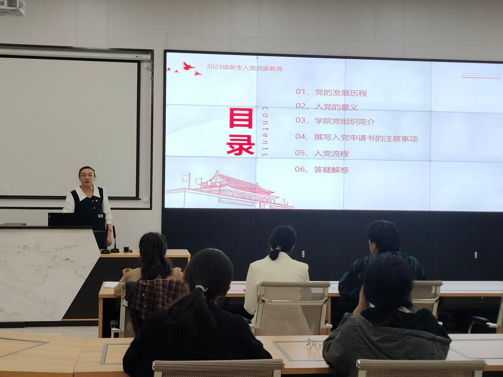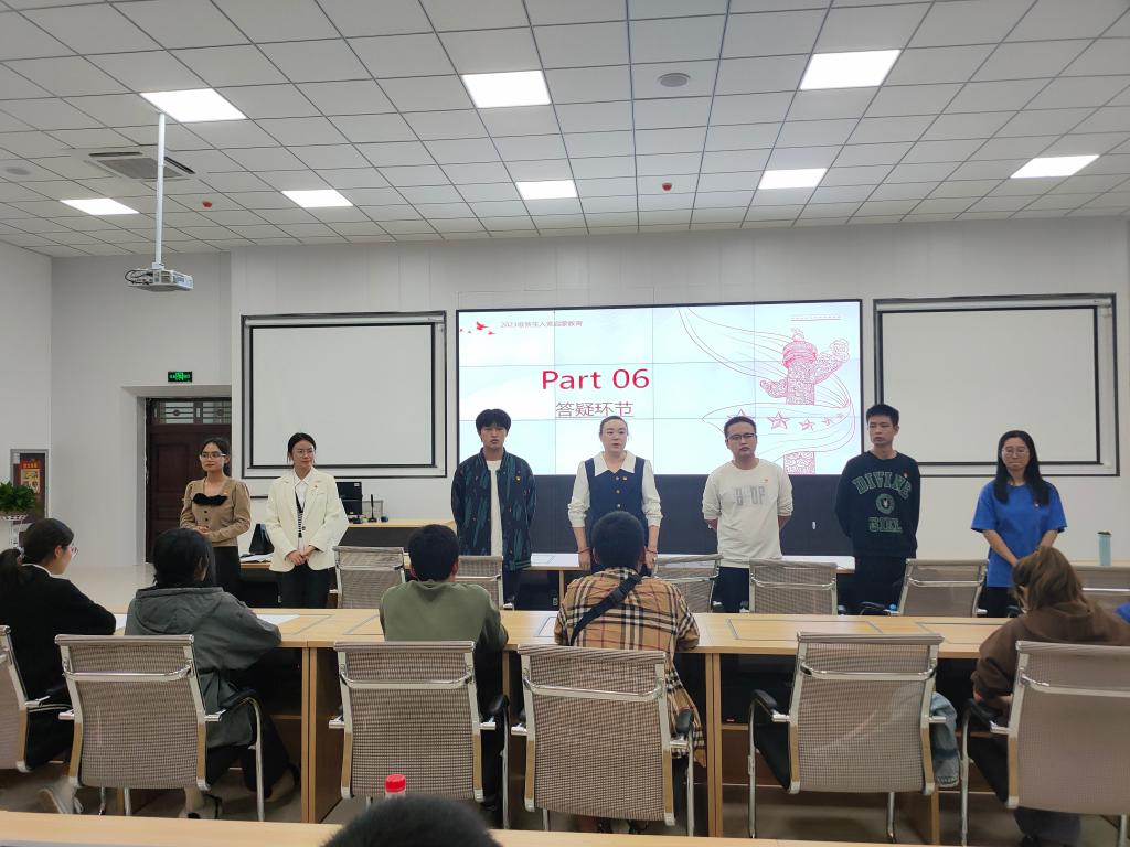 李黎从党的发展历程、大学生入党的意义、学院党组织简介、大学生入党程序、入党申请书的撰写等方面进行讲解。活动最后支部全体党员做自我介绍和经历分享,并为大家答疑解惑。
