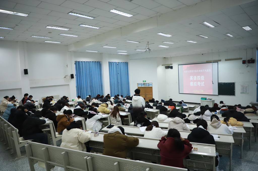 此次模拟考试严格按照全国大学生英语四级标准进行,包括听力、阅读、写作、翻译多个部分,有200多名新生参加,学院为了保证模拟考试的公正性和真实性,专门设立辅导员和学生干部组成的监考小组。