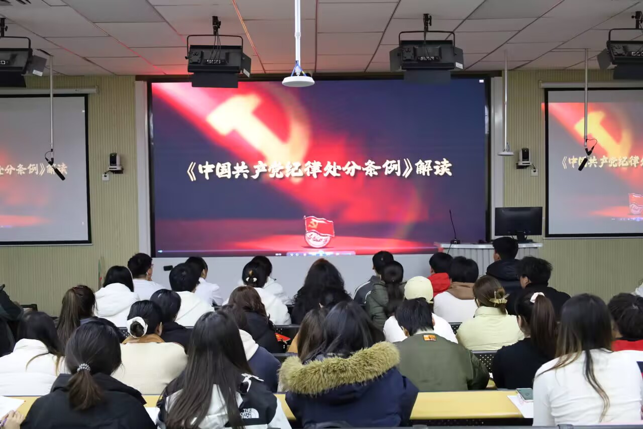 为提高基层党组织的纪律性,加强党员思想建设、提升党员党性修养,工商系、财会系、经贸系、旅管系学生党支部于3月1日14:00在逸夫楼阶教12观看以《中国共产党纪律处分条例解读》为主题的微党课,各学生党支部在校学生党员、入党积极分子参加。