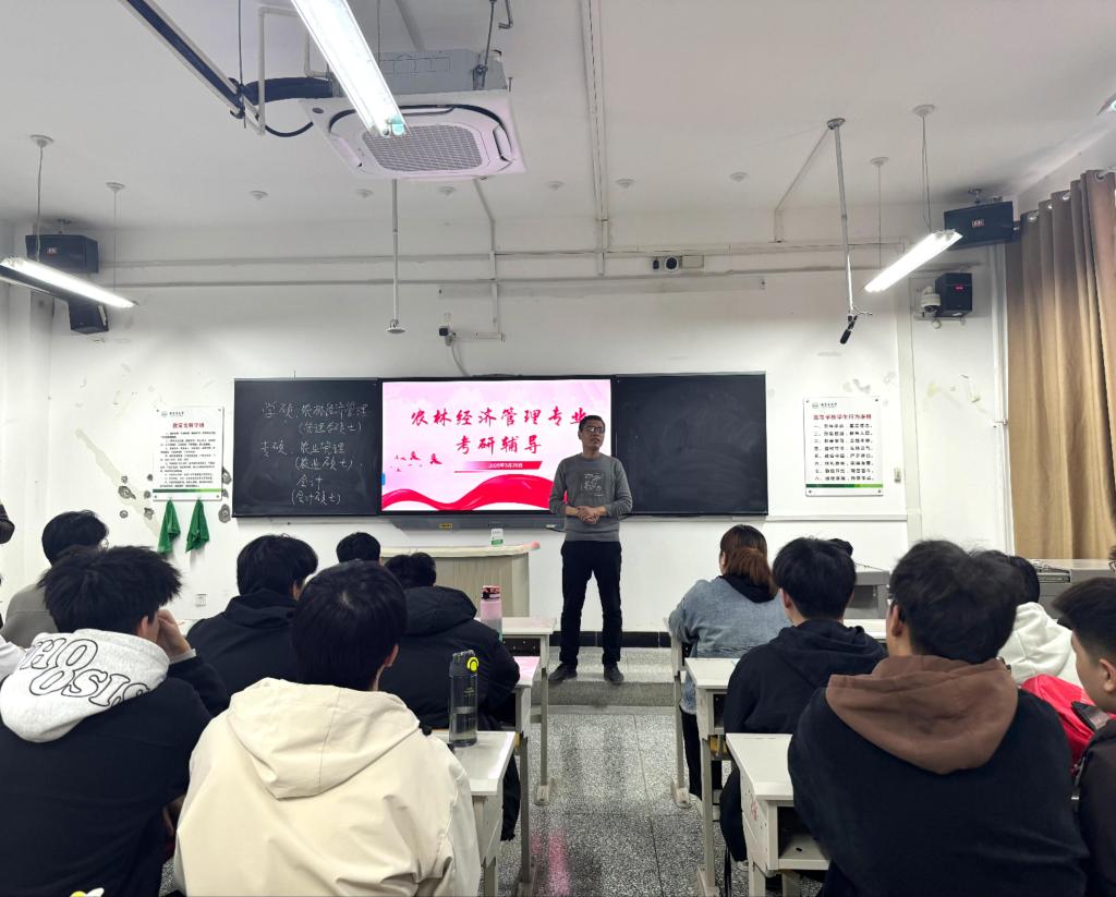 为帮助农林经济管理专业学生更好地备战考研,明确备考方向,提升复习效率,学院于3月25日在综合楼102开展了农林经济管理专业考研辅导交流会。本次交流会由党委副书记、纪委书记朱哲、经贸系主任苏旭峰教授担任主讲嘉宾,农林经济管理2022级59名学生参加。