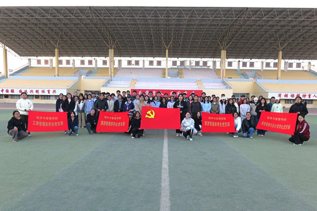 学生党支部在校本部西区操场组织开展了“红色竞技践初心,同心共筑中华情”特色党日活动。活动旨在深入学习贯彻习近平新时代中国特色社会主义思想,庆祝新疆维吾尔自治区成立70周年,进一步增强学生党员的凝聚力和党性修养,铸牢中华民族共同体意识。学院全体在校学生党员参加了此次活动。