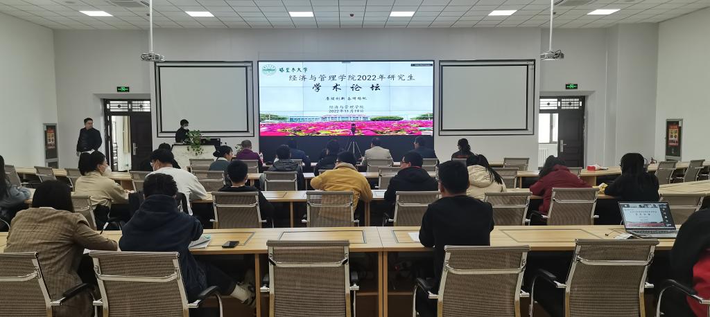 在新文科楼503以线上+线下的形式举办2022年研究生学术论坛。出席本次论坛的有学院党委书记蒋志辉,党委副书记、纪委书记朱哲,评审专家马琼、欧阳金琼、石晶以及学院全体研究生。论坛由学院党委副书记、院长王学剑主持。