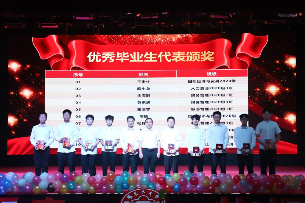 表彰先进,臻于至善,晚会最后,还进行了优秀毕业生代表颁奖仪式,由学院党委书记蒋志辉为优秀毕业生代表们颁发书籍,蒋志辉书记希望2024届优秀毕业生珍惜荣誉,不断进取,以更优异的成绩和更突出的表现回报社会,接过书写精彩人生的接力棒,砥砺奋进,学有所成!