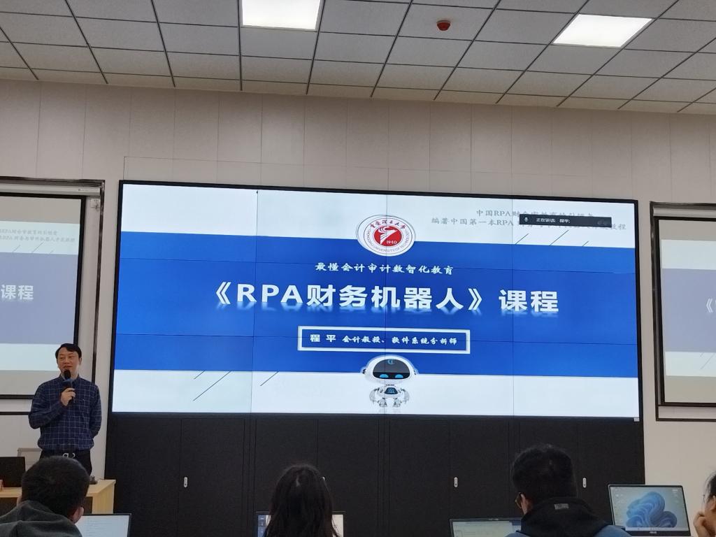 作“RPA财务机器人应用”专题讲座,学院会计专业研究生及财会系全体教师参加。